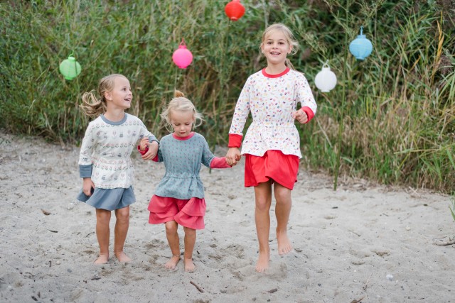 Klar, stelle ich Euch hier zuerst mein eigenes Label vor: die Chleiderei (www.chleiderei.com). Die Chleiderei designed Röcke und Kleider für Mädchen. Die Kleider wachsen aufgrund folgender Aspekte mit: Einem ausgetüftelten Schnitt, verstellbare Taillenweite sowie einem modularen Stoffband, das ohne weitere Hilfsmittel mittels einer Druckknopfleiste angefügt werden kann.